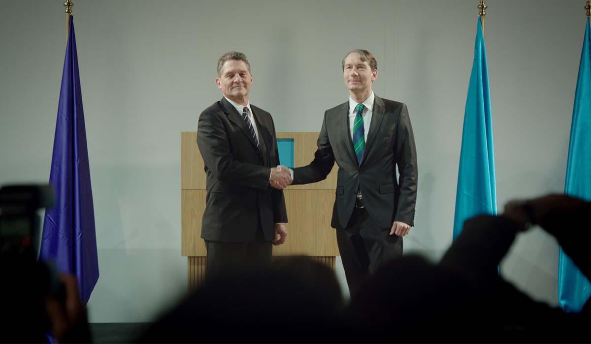 Only a formal handshake separates two politicians from a sealed contract. But as both stubbornly try to gain the upper hand within the gesture, their grim intransigence takes on a monstrous life of its own.